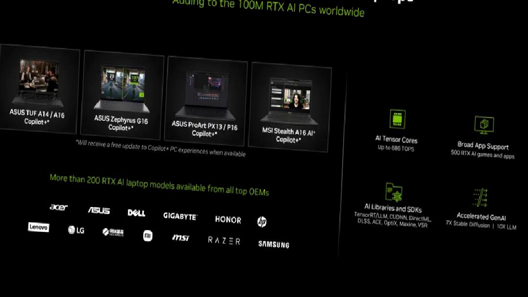 NVIDIA’nın aktardığına göre ilk Copilot+ oyuncu bilgisayarlarını çıkaracak şirketler ASUS ve MSI olacak. Şirket, GeForce RTX 4070 GPU’lara sahip bu bilgisayarların Windows 11’in yapay zekâ yeteneklerine sahip olacağını söylüyor.