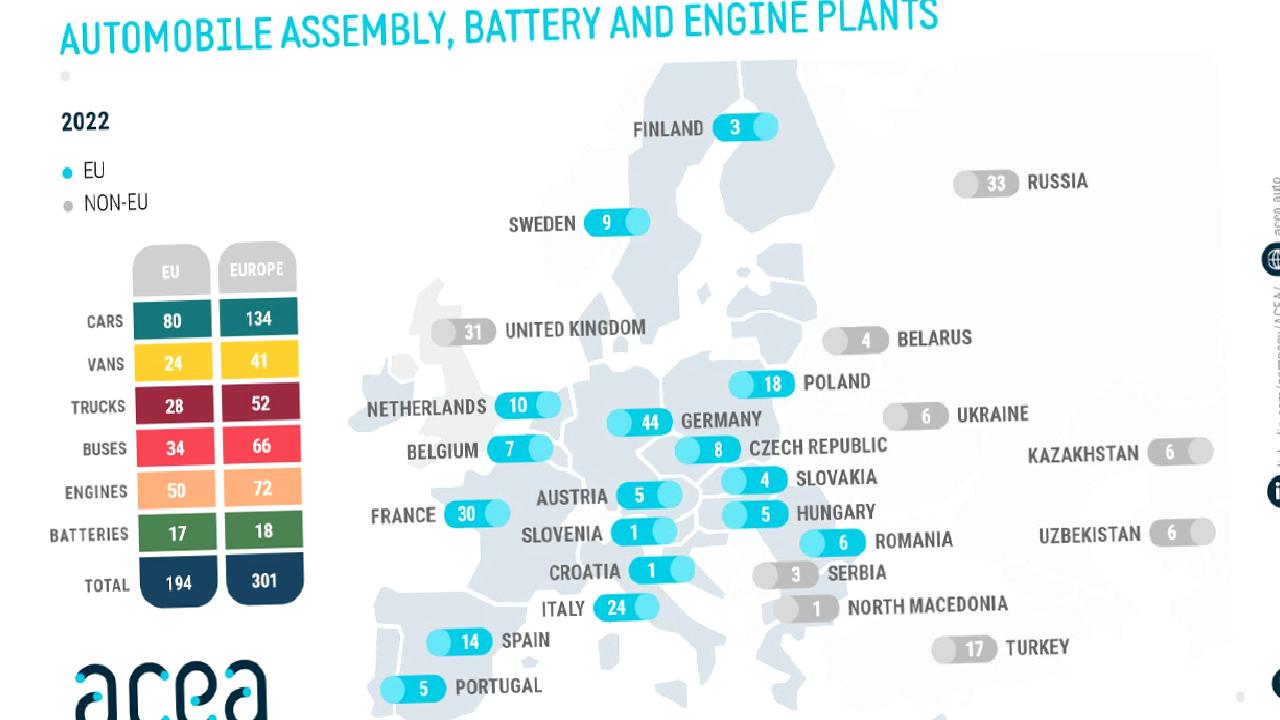 Avrupa Araba Üreticileri Birliği, 2022 yılı itibarıyla Avrupa’da kaç adet otomotiv fabrikası bulunduğunu açıkladı. Türkiye, en çok fabrikaya sahip 7. ülke olarak kayıtlara geçti.