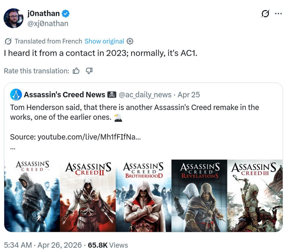 Ubisoft cephesinden yeni bir sızıntı geldi. Görünen o ki seri için sadece tek bir geri dönüş planı yok. X platformunda paylaşım yapan xjØnathan, Ubisoft içinde geliştirilen yeni bir projeye işaret etti. İddiaya göre şirket, ilk oyun olan Assassin’s Creed için bir remake hazırlıyor.