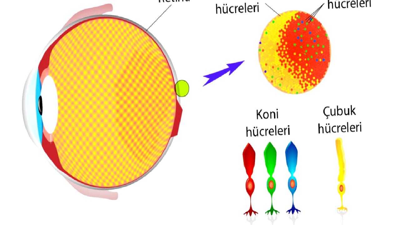 Koniler; yeşil, mavi ve kırmızı olmak üzere ışığa en hassas olan üç pigmenti içerir.